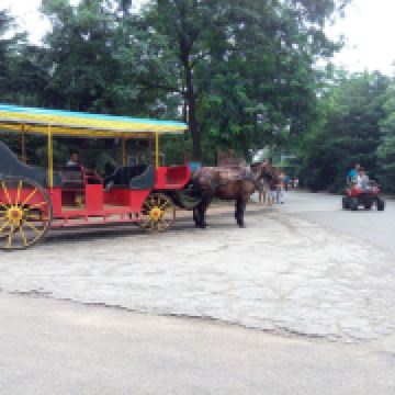 园内交通:参考价格:2人骑行票:60元,4人骑行票:100元(时长2小时,自行车押金200元/辆);地址:景区内观光自行车骑行处;景区内均可使用未满14岁儿童禁止单独骑行,须在家长和监护人的全程陪同下方可使用本车,但不能掌握方向盘