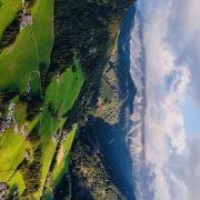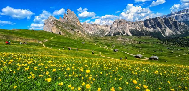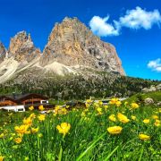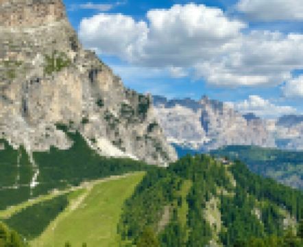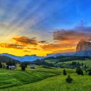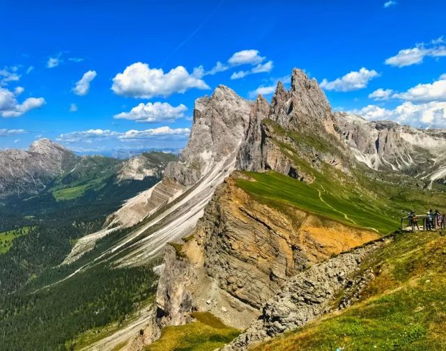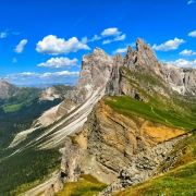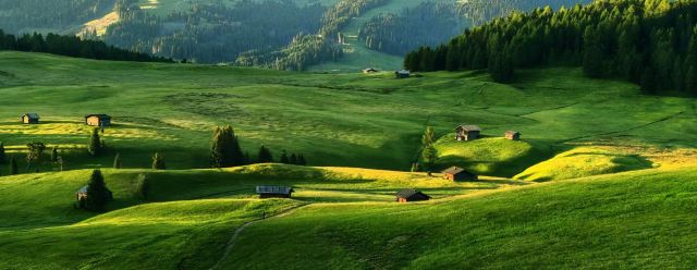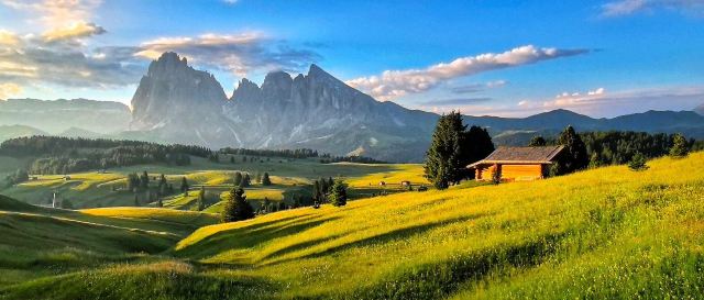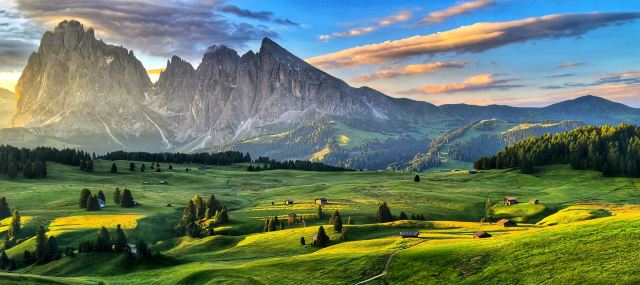 多洛米蒂山脉位于阿尔卑斯山南麓,有阿尔卑斯山典型的石灰岩地貌,这里风景优美,巍峨的巨型白云岩山峰直插云霄,山坡上绿草葱葱,牛羊成群的牧场连接成片,刀切般山峰下精雕细琢的德系小镇悠然自得。