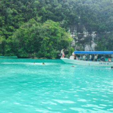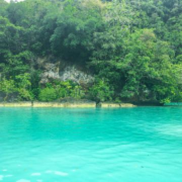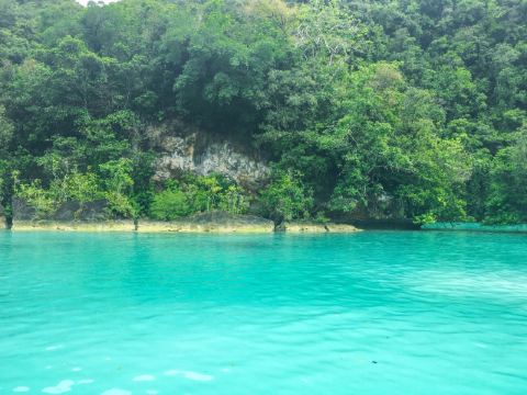 牛奶湖是当地颇具特色的旅游地,它不是淡水湖,只是一个众小岛之间的小小海域,只是地形的关系看起来像座湖。在古代,这里是火山活动频繁的区域,火山喷发后的火山灰沉积湖底,经过长年累月,形成了厚厚一层的火山泥。由于这里的海水透明度很高,湖底沉淀的火山泥使海水蓝绿色中带有白色,加上湖底绵白的火山泥很像牛奶,所以才被称为牛奶湖。