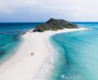 该地拥有白色沙滩和有趣的岩层,海水清澈湛蓝,可以看到下面的珊瑚。
