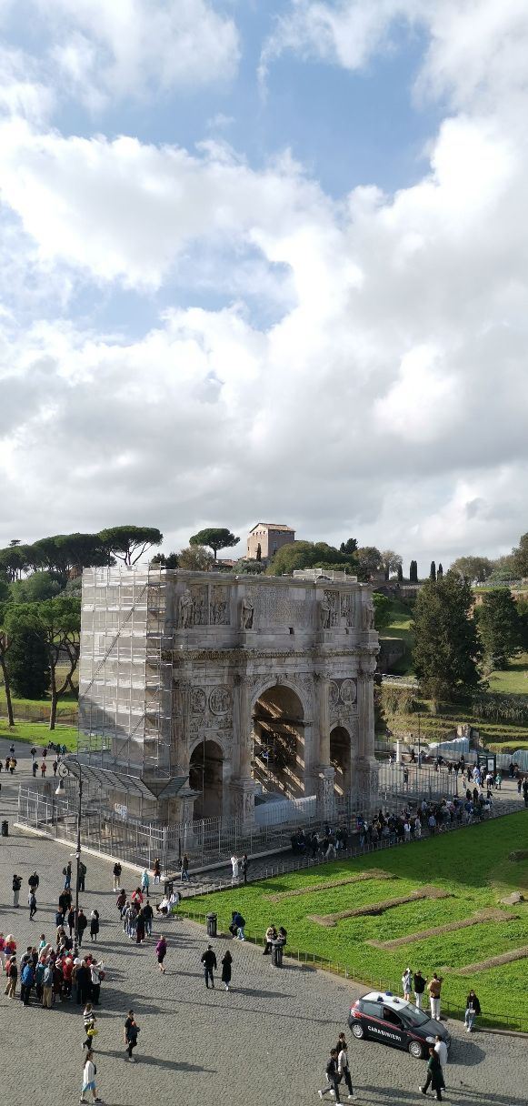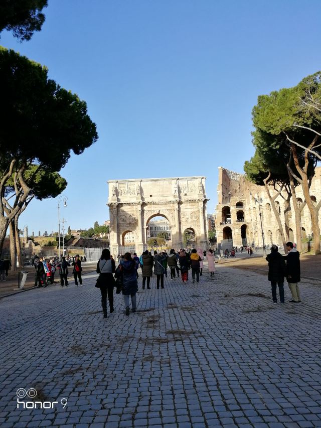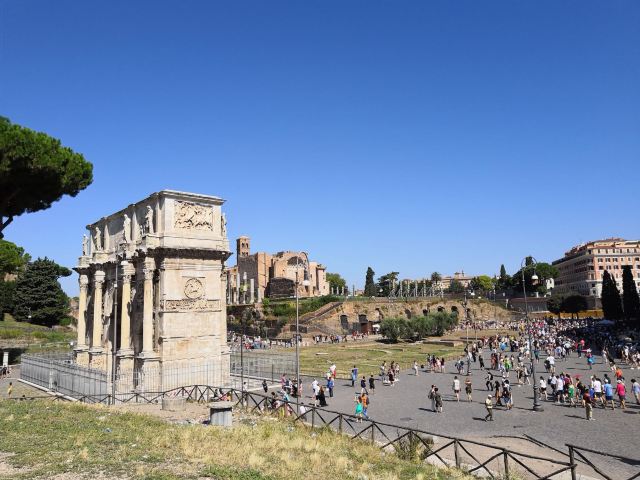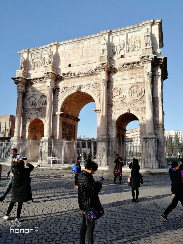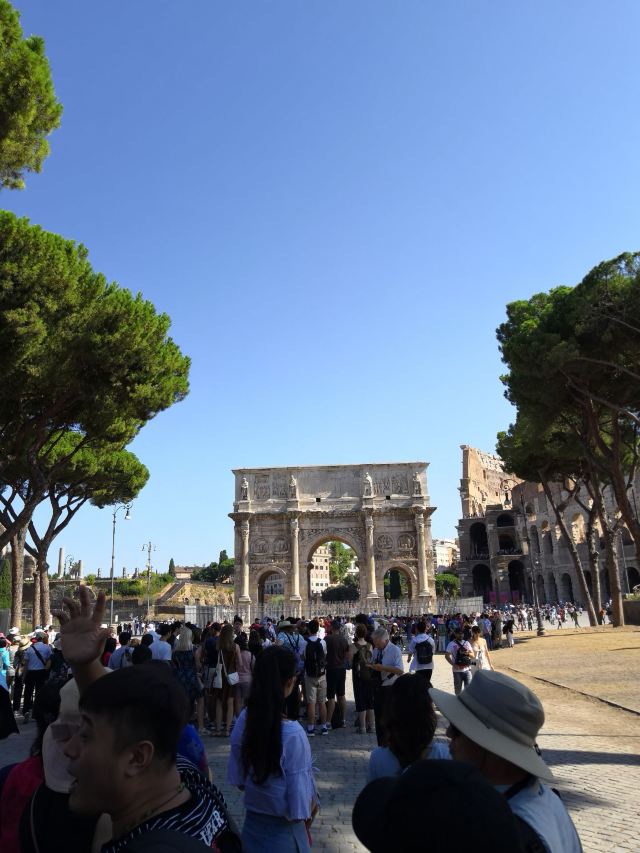 远远望去,君士坦丁凯旋门高耸而庄严。它那宏伟的轮廓在阳光的映照下,投下巨大而深沉的阴影,为这片土地增添了几分庄重的氛围。许多游客和我一样,站在不远处,便被它的雄伟气势深深吸引,纷纷停下脚步,仰望着这座承载着千年历史的建筑,眼中满是对历史的敬畏与好奇。