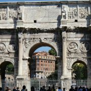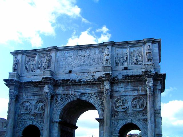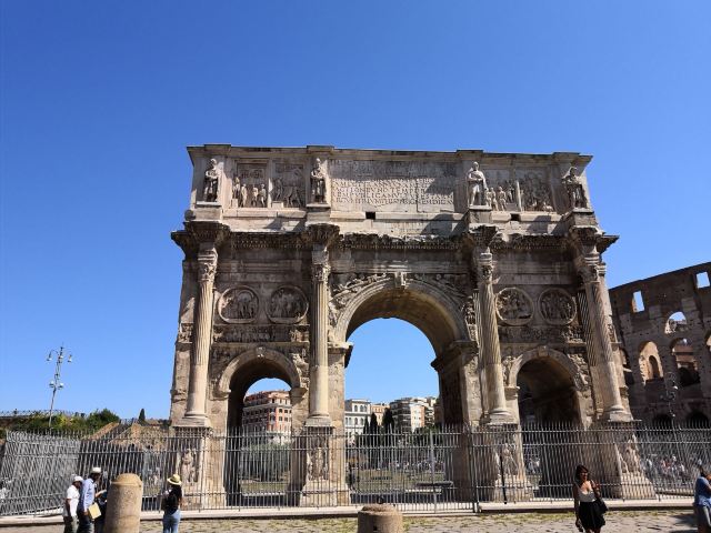 君士坦丁凯旋门建于315年,是为了纪念君士坦丁大帝击败马克森提皇帝统一罗马帝国而建的。古罗马时代共有21座,现今罗马城中仅存3座,该建筑就是其中的一个,另外两座位于古罗马广场。