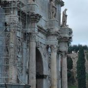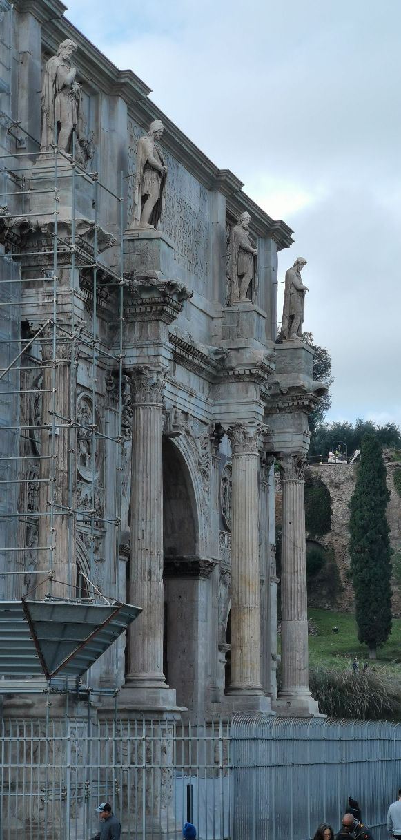 该建筑位于罗马斗兽场西侧,长25.7米,宽7.4米,高21米,拥有3个拱门,上面的雕塑非常精美。