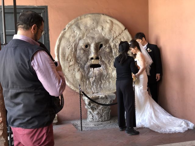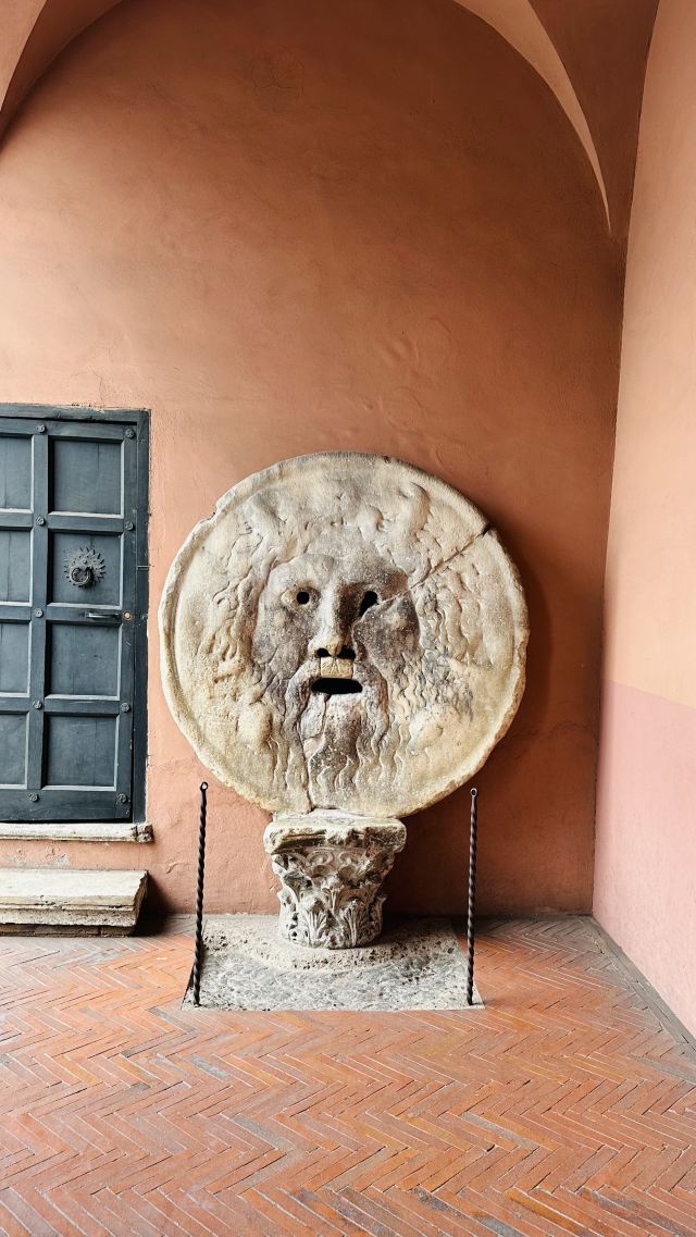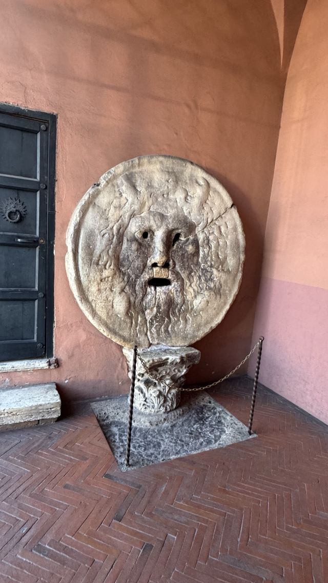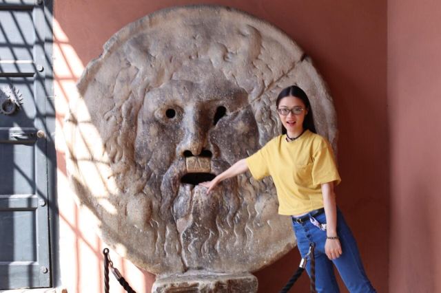 在电影「罗马假期」中,男主角假装手放进真理之口被咬断吓得女主角奥黛丽赫本花容失色,真理之口因此经典桥段而声名大噪,之后每个来到罗马的游客必到此朝圣一游。