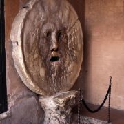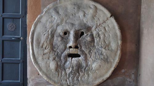 真理之口是一个大理石雕刻,类似人的面孔,位于义大利罗马希腊圣母堂的门廊。对于真理之口上雕刻的人脸大家众说纷纭,有人说祂是海神波赛顿(Poseidon)的儿子,也有人说祂描绘的是一个异教的神,据考察在古罗马时期它其实是个喷泉口或是个下水道的人孔盖,不过,真理之口最有名的特色,是用作测谎仪。从中世纪开始,人们相信如果有人撒谎,他的手伸进口中,就会被咬住。雕塑的直径有5尺9英寸,它的重量达到大约2850磅。它形象地代表了一个留胡子的男性的脸,它的眼睛,鼻子和嘴巴都是钻穿漏空的。它的最初功能至今都不是特别清楚:会是一个喷泉吗?是一个排水管吗?或者甚至是一个下水道盖板吗?这片大面具以它的传奇与悠久的历史而闻名。在中世纪时期,这张嘴被认为有着千里眼的能力。
