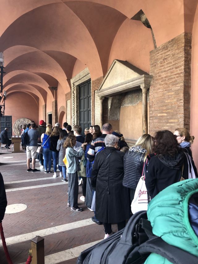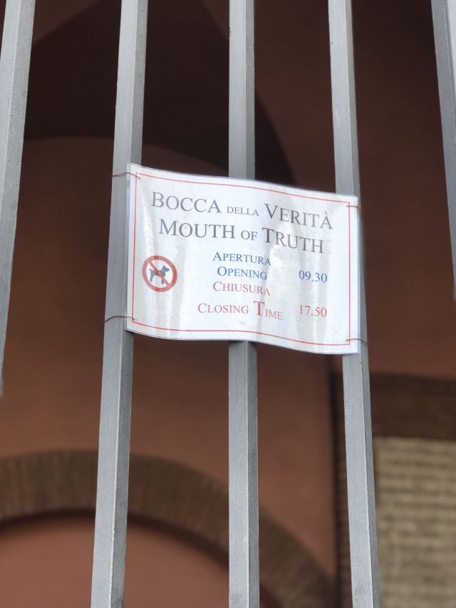 真理之口就是一个古代的下水道盖子,在一座破旧的小教堂门口,每天早上09:30开门,开门的时候直接进来就好,不用门票。顺便看看小教堂可以了,进门左侧有个人在祭坛地下室门口劝人捐钱的,给人的感觉就是捐完钱才能进地下室,可千万不要多捐,也可以不捐,给几分或者几毛钱就算了,因为那里面什么都没有,进去不用一分钟就出来好了。最好是早上早去点来,尤其是夏天的旅游旺季,排队最起码半小时打底。