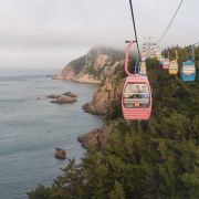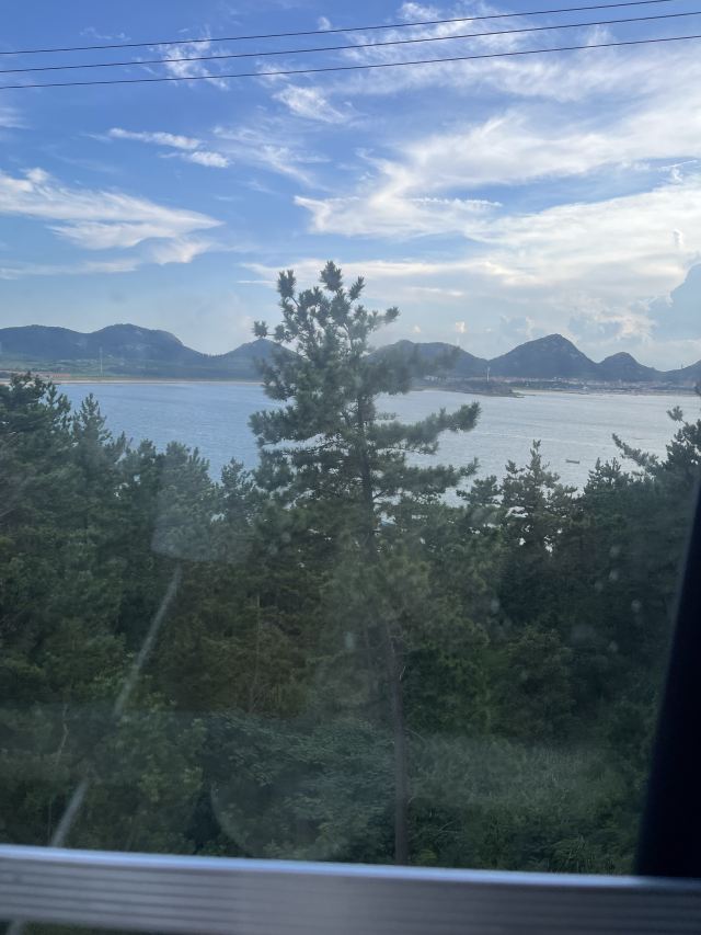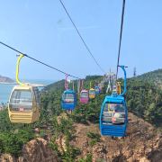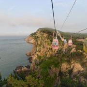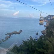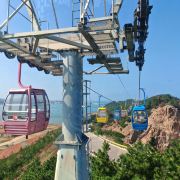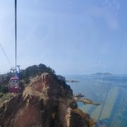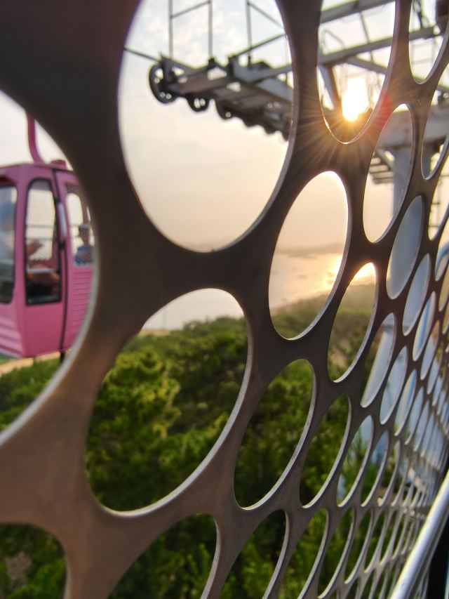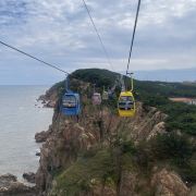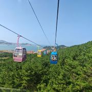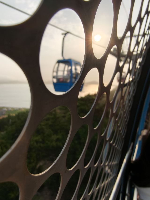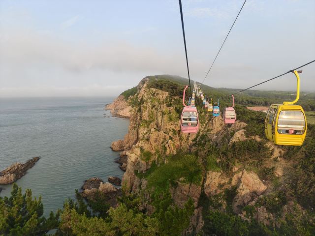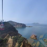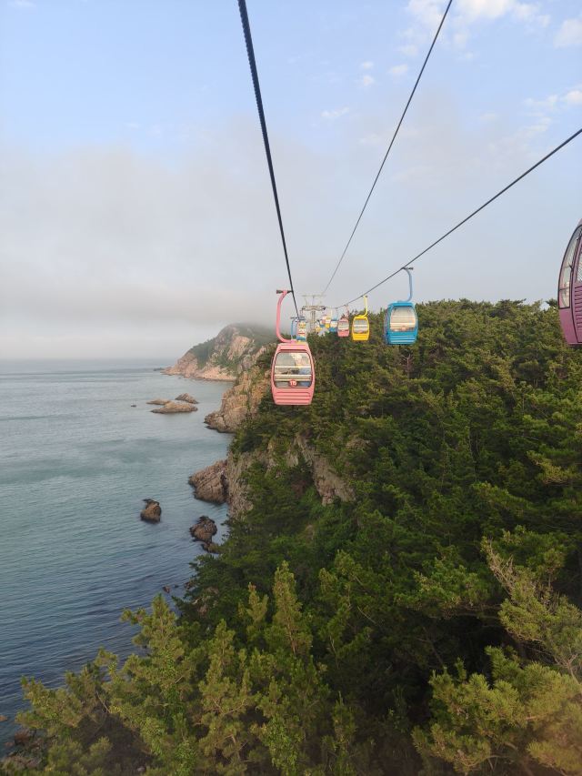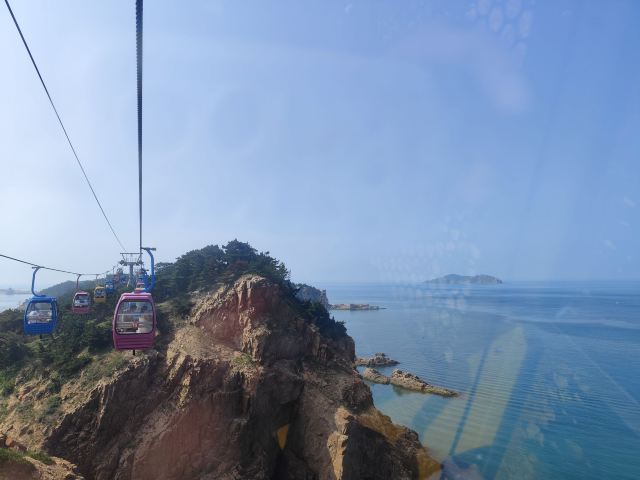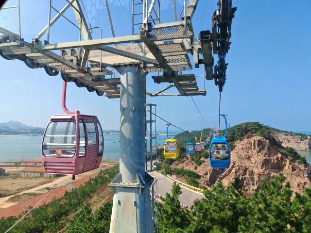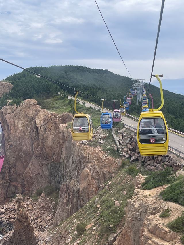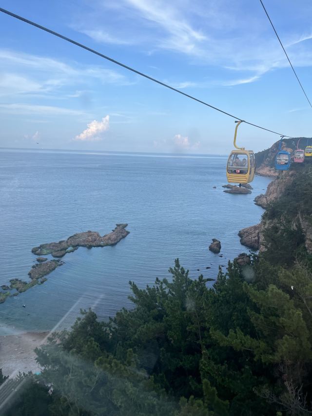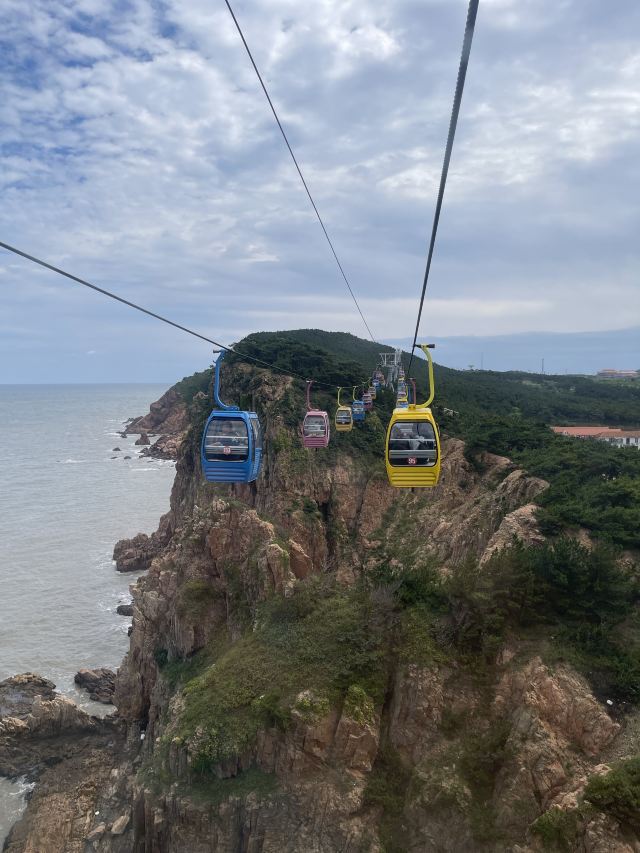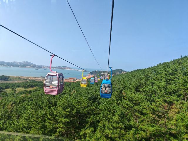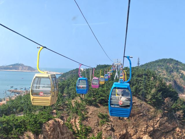 坐进缆车,随着缓缓上升,风景逐渐变得开阔。北线索道名不虚传,一边是连绵的山,一边是广袤的海,景色美不胜收。阳光洒在海面上,波光粼粼,让人心旷神怡。缆车晃晃悠悠的,刚开始还有点害怕,后来就完全沉浸在美景中了。