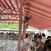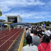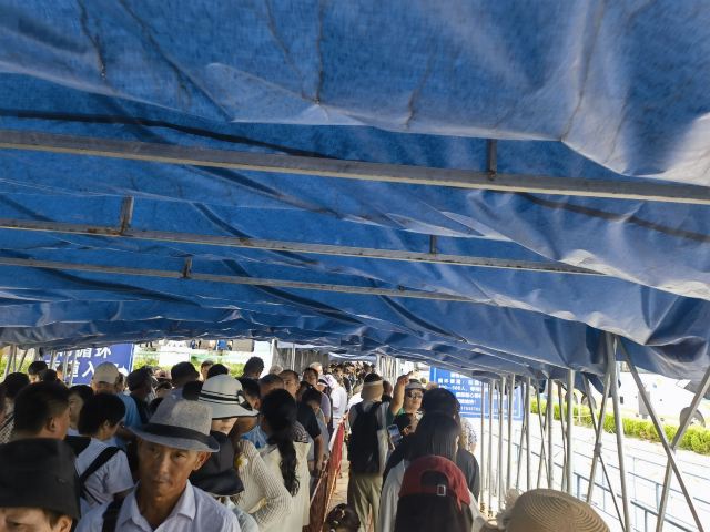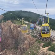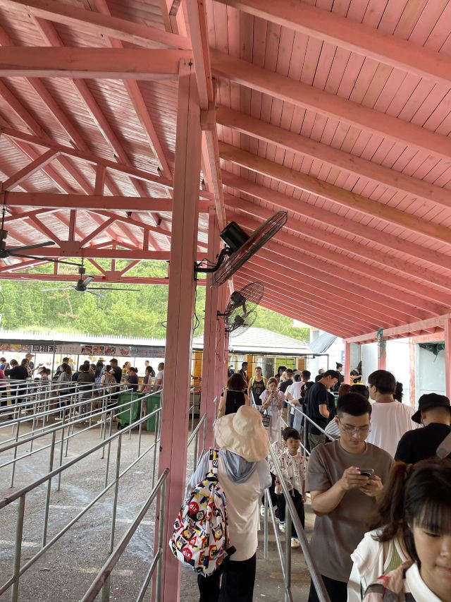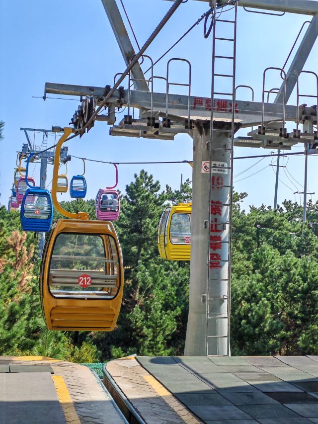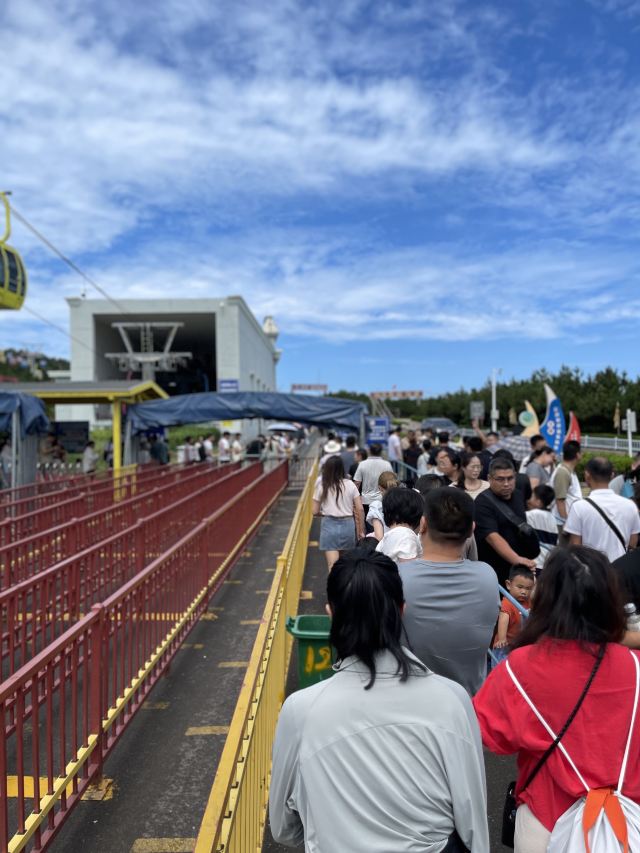 来威海,慕名打卡了摩天岭索道。提前在网上买好票,到现场一看,人那叫一个多。本以为要排很久的队,结果等了一个多小时就轮到我们了。