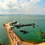 微信小程序鸡鸣岛本是座名不见经传的小岛,岛上居民以捕鱼为业,因为2013年成为热播的亲子秀《爸爸去哪儿》的拍摄地之一,一下子变得名扬全国,让大家向往着这个远离城市喧嚣的海上桃源。游览鸡鸣岛主要的还是打渔尝海鲜,看看海岛石崖风景,再顺便住住海草房,所以除了冬天海风大的时候,基本上都可以上鸡鸣岛游玩。鸡鸣岛位于山东半岛的东北部沿海、威海所辖荣成市港西镇虎头角西北约1公里的海域中,是一座美丽纯朴的渔村小岛。从空中俯瞰,鸡鸣岛形状酷似雄鸡,故而得名。一般来说,鸡鸣岛较适宜的旅游季节是春夏秋,每年的5-10月。在这些季节,都可以品尝到当地美味的海鲜,欣赏海岛独特的风景。相传很久以前,二郎神奉命给海龙王送珍禽异兽,他挑着担儿,前面装着西域幼驴,后面装着北国雄鸡。为避凡界耳目,他便白天隐匿,夜间赶路。没想到因道路生疏,延缓了行程,在即将到达东海之际,晨曦己露,雄鸡一声长鸣,二郎神惊慌中折了扁担,一时收拾不及,使匆匆隐去。被扔下的雄鸡落海,化作鸡鸣岛,幼驴落海,化作海驴岛,只有两截扁担随水漂去,在烟台芝罘一带停住,化为扁担岛。