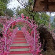 刚进去就是各种拍照的地方,然后进去就是爬山,每次感觉自己累了就有休息的地方,途中还有小食和水卖,而且收费便宜,一瓶水才2块钱。