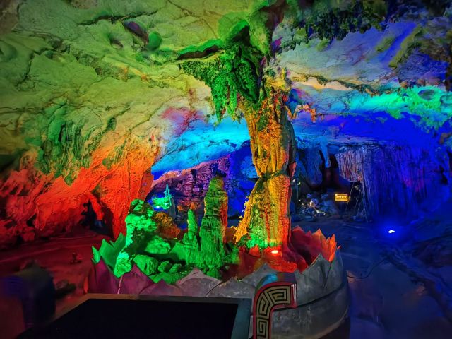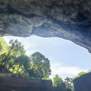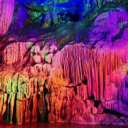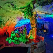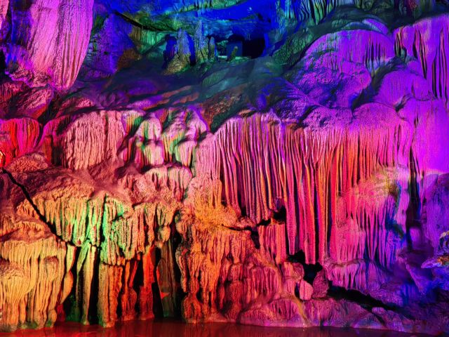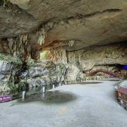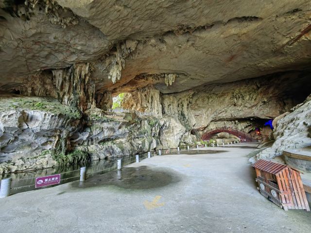老君洞位于广西融水县,是融州古八景之首,堪称“水月洞天”。清澈婉蜒的灵寿溪自洞背穿山而过.流经洞中的部分长约300米。乘小舟自后洞顺流而下,可一览全洞风光,观赏洞中石壁上的摩崖石刻及千姿百态的钟乳石。洞口古木参天,浓荫蔽日,两座宋代建造的古石桥在洞口跨溪而卧,其桥造型美观,结构精巧,目前仍可通行汽车。