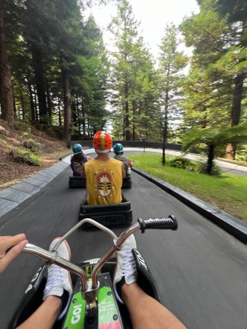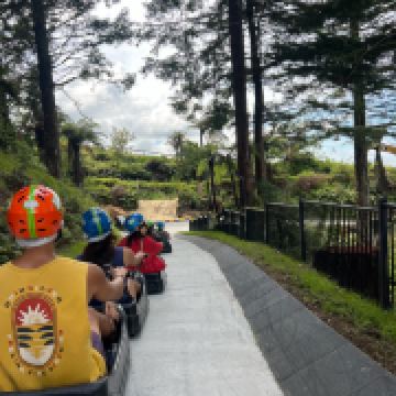 这里知名的一个游玩项目是滑板车,你戴好安全头盔后,坐在底盘极低的三轮车上,靠重力往下使劲冲刺,刺激到令你尖声惊叫!滑板车分为慢速道、中级道以及冲刺道,总长5公里,足够你玩了吧?还不够的话就多玩几次!事实上有不少人一接触这滑板车就沉醉得无法自拔,不玩个三四回不撒手,如果你预感到自己也属于这种人类,在买票时记得买缆车+3程(或+5程)的联票,能省下不少玩乐的银子噢!