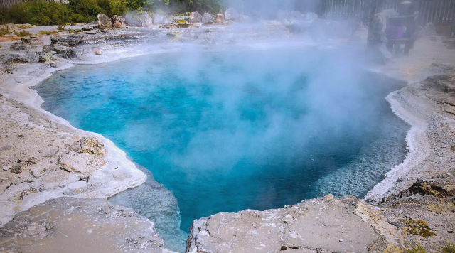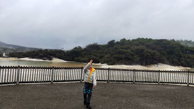 5分 超棒华卡村最有名是地热喷泉,老远就闻到淡淡的或强烈的硫磺味,地下很多地方冒着热气,一团团和白云相映交辉。有的房子前用竹管接着地热,就像烟筒冒着烟。其中间隙泉是新西兰最活跃的间隙泉,喷出来的烟雾状喷泉高的时候十几米,据说最高有40米,但是只有自然之母才能知道何时喷发。我们很幸运看到了。印象最深的是香槟池,水面冒着气泡,池子不大,水的颜色瓦蓝,加之边缘也有冒白气,是一块蓝色的宝石,池面上一团团白气,实际上没有冒气的时候平静,微微波纹,但是多半时候池面白烟腾腾。香槟池还有一个功能,当年毛利人在里面煮绿叶蔬菜,根茎食物和海鲜。现在为准备午餐,一个大胖子脖子和胳膊上满是刺青吧玉米,装在袋子里投入池中。我们和他聊天,说香槟池美丽,他说也很危险,最高温度有95度,必须站在围杆外面。还有的池子温度可达120度。有个油浴池是村里公共浴池,清晨或深夜时分裸浴,这个池子油性水质和沉淀的矿物质对身体有好处。特别有利于关节炎,风湿疾病。