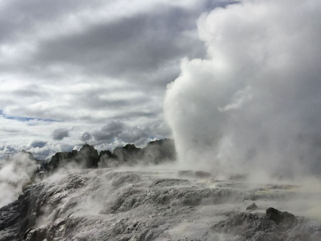 5分 超棒火山喷泉以其间歇性的喷发方式,将地下深处的沸水喷射到空中,水柱的高度随着地压的变化而变化,这种奇观使得罗托鲁瓦成为了地热观赏的必访之地。