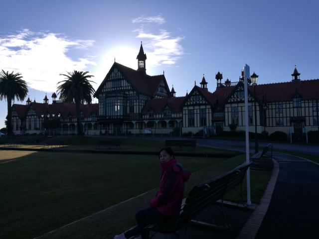 典雅大气的建筑。花园大草坪的深处,是罗托鲁瓦历史和艺术博物馆。建于1908年的大楼,尖顶红瓦黄墙,楼层不高,幅面很宽,揉合了都铎王朝建筑式样和维多利亚建筑风格。极具建筑美感的大楼,近景远景、左拍右拍,都是一张张漂亮的相片。