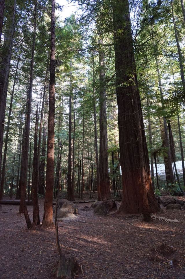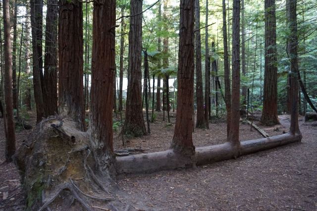 新西兰人在这个红木森林公园里面种植了170多种不同的树木,希望能够验证出哪里种树能够适应新西兰,尤其是罗托鲁阿这个地热资源丰富的地区。在这170多种树中,有三分之一的种类存活下来。现在,红木森林也是人们散步,或者是进行山地自行车锻炼的好地方。