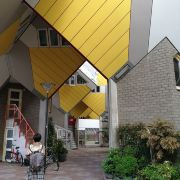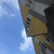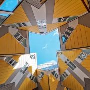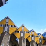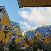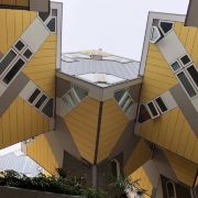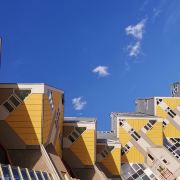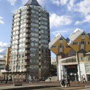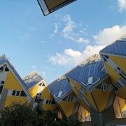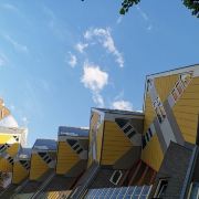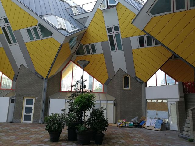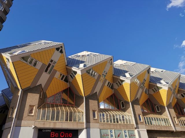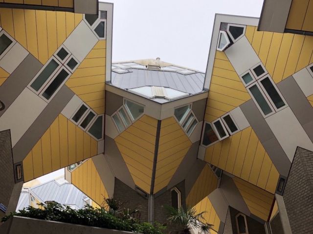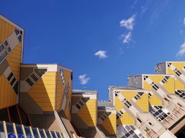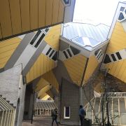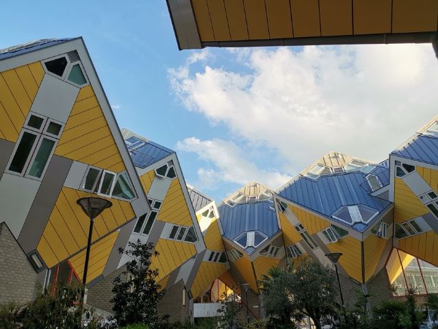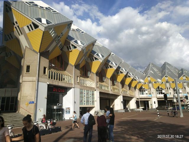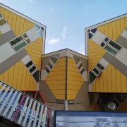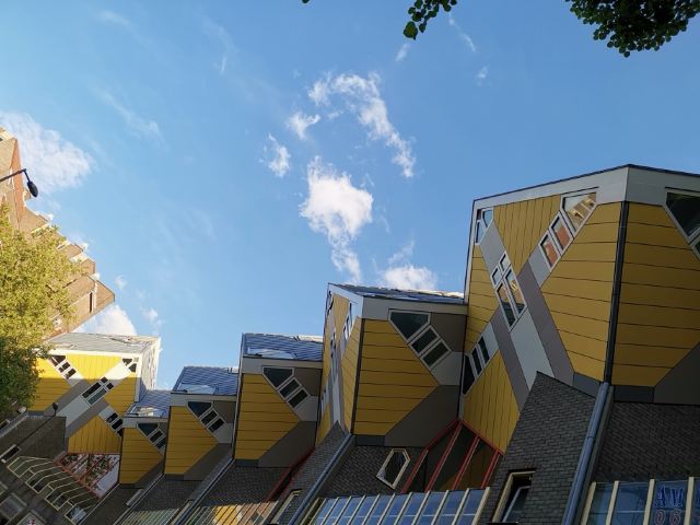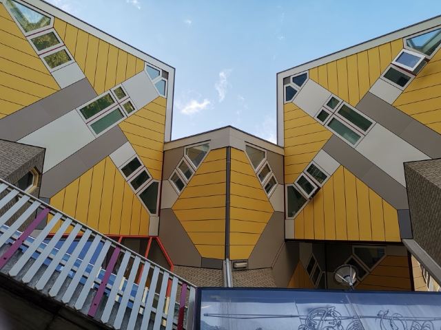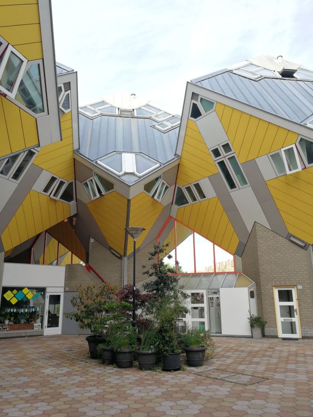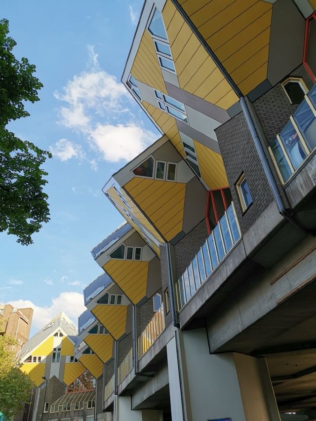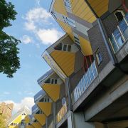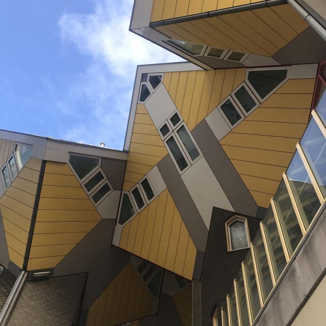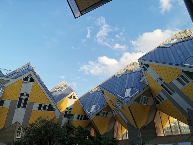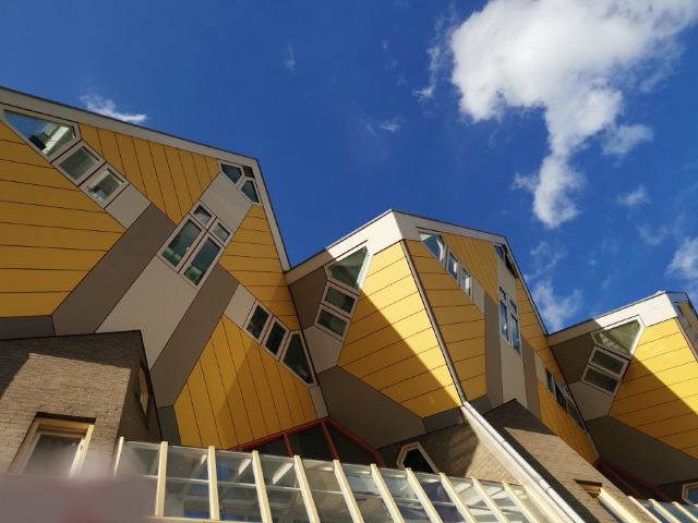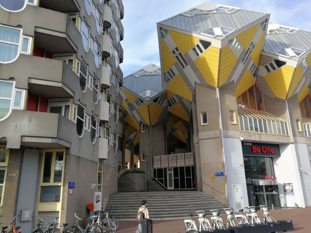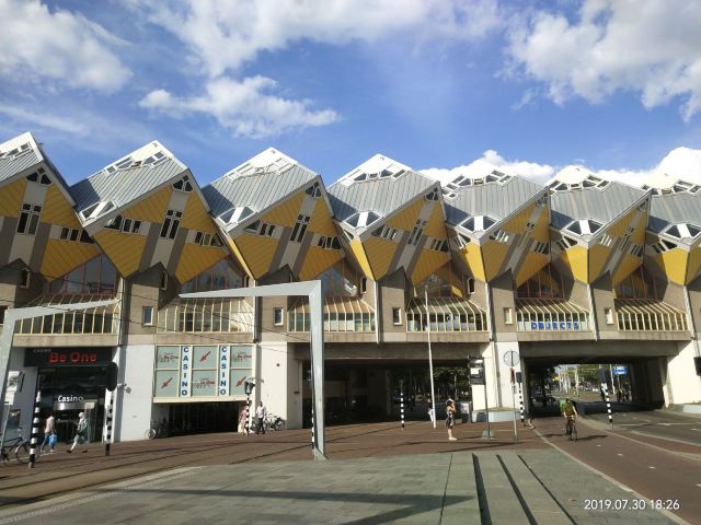 立体方块屋如巨大的魔方,相互倾斜排列,个性独特的外形无疑是鹿特丹的经典地标建筑。 它建于1984年,由荷兰建筑师Piet Blom负责设计。整个建筑由40幢方块房子倾斜45°连接而成,是荷兰较早的立方体形房子。 设计理念Blom认为自己的设计就像一棵抽象的树,所有房子组合一起就成一片森林。具有强烈的视觉效果。方块房子让人想起可以通过柱子进入的树屋。整座大厦其实是横跨街道的行人天桥。从某种意义上说,方块房子是一项建筑学的实验,Blom在其中思考着形式、美学和空间效果,而不是出于功能性和实用目的。