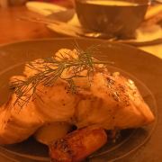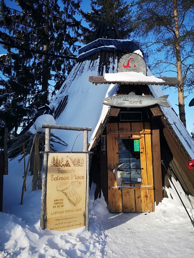 【美食】最出名当然是要吃位于圣诞老人邮局侧门旁边那家炭火烤三文鱼店咯,现点现烤,好大一份三文鱼,鱼腩很肥妹,鱼皮会比较蕉不过很香。再搭配上奶酪会比较解腻,建议点套餐也才20+欧元,超值。