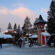 圣诞老人村位于瓦涅米以北8公里处的北极圈上。每年源源不断的游客从世界各地蜂拥而至,以一睹圣诞老人的风采。圣诞老人村是一组木建筑群,包括有正门的尖顶、餐厅、花圃、圣诞老人办公室、居所、邮局、礼品店、麋鹿园等。