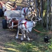 林边有个以木栏围着的鹿园,里面有许多美丽的麋鹿。夏天,它们懒洋洋地躺在草坪上养生;到了冬天,特别是圣诞节时,它们为圣诞老人及游客努力工作,拖着鹿车在雪地上飞驰,让游客享受雪花扑面的快感,感受圣诞的快乐与温馨,使圣诞卡上的情景变成现实。