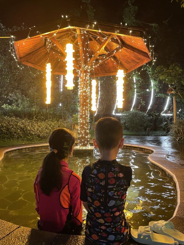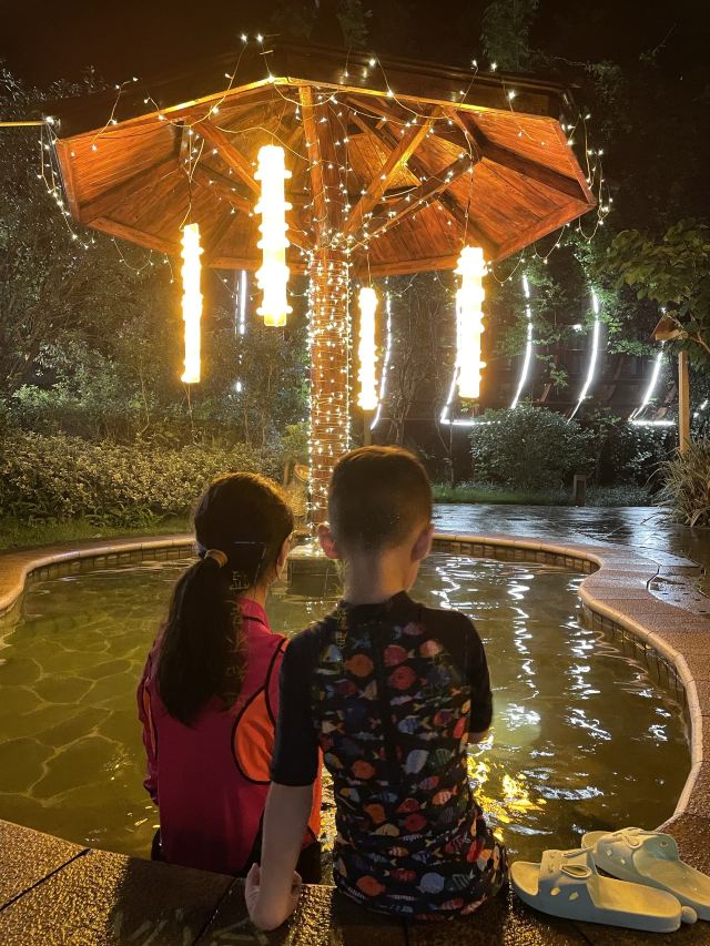 4分 满意温泉水超靓,水的温度很舒服,池子的数量还可以,但充饥的食品就少了一点。