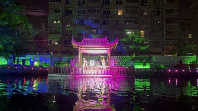 乘仿古画舫沿河缓行,两岸建筑立面投影呈现瑞安百年商埠变迁、木活字印刷等文化故事,途经拱辰桥等古桥时,触发声光装置,桥洞水幕浮现诗词或水乡生活剪影,在“老茶亭”码头停靠,演员演绎民国茶馆场景,游客可凭船票兑换盖碗茶体验。