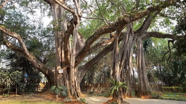 午后沿木质栈道深入林荫腹地,会发现气根形成的天然拱门下藏着蕨类与兰草的微型生态圈。雨季时,附生在枝干间的鹿角蕨会舒展新叶,像一群悬空的绿色蝴蝶。村民在林中空地支起竹桌,用芭蕉叶包裹的泼水粑粑和酸木瓜蘸辣子,为探秘者补充能量。