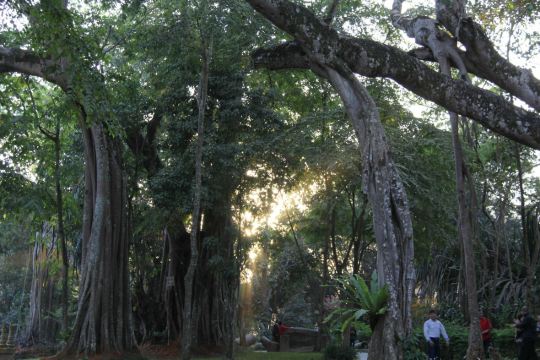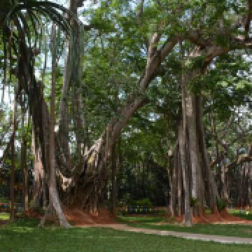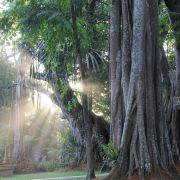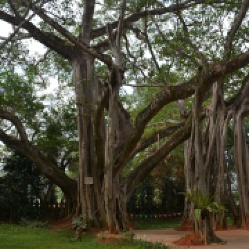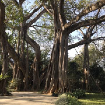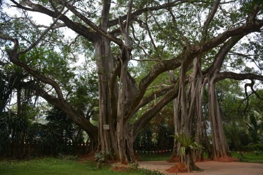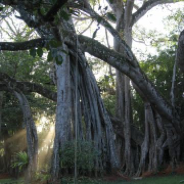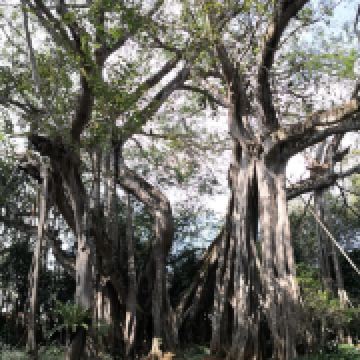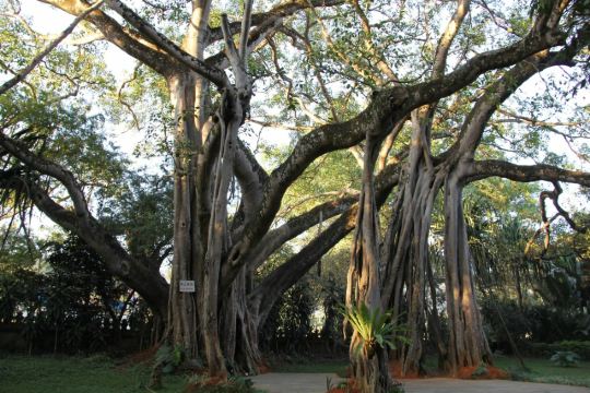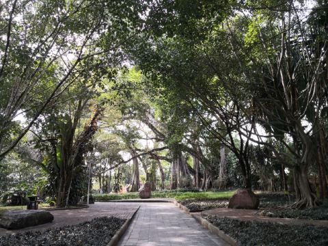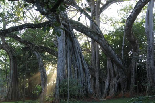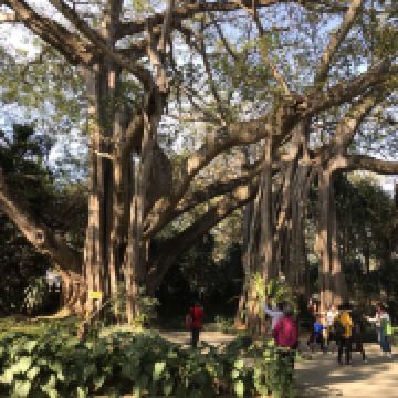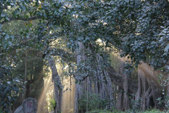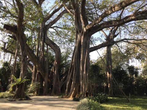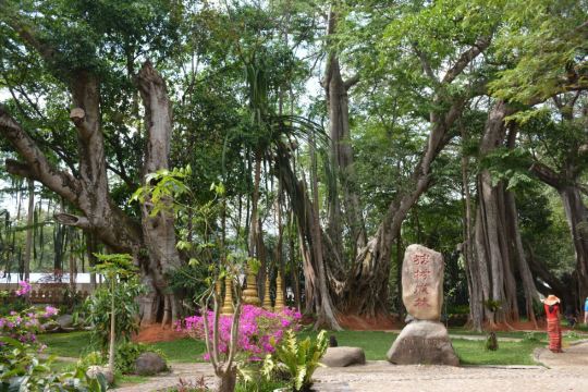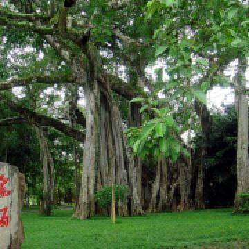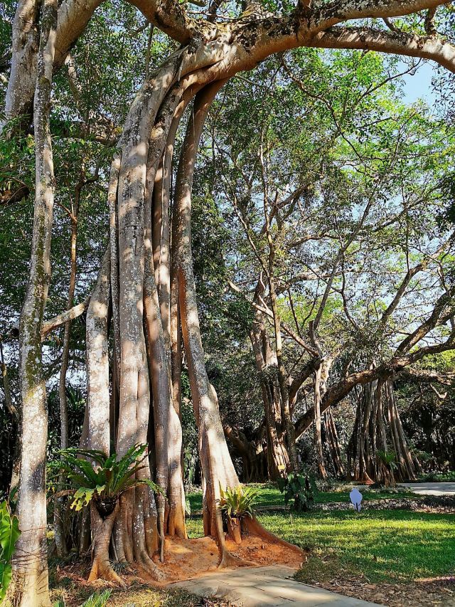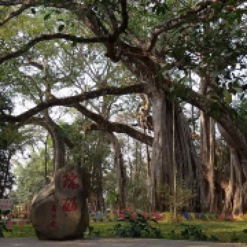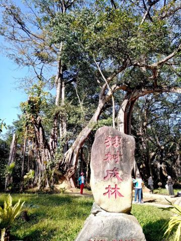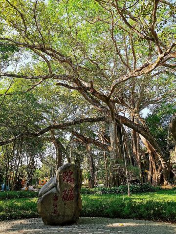 在独树成林景区,一进门就是天下奇观,横长的树,粗粗的树干与大地水平,树枝却是“天天向上”;再往里面走,就是几百年的大榕树,一片枝蔓纵横,根系交错,树根缠绕于树干的景象;榕树的气根很多,这丝丝下垂的气根,与大地相遇时,便迅速向下插入土壤,不断的吸收土壤中的水分和养分,变得粗壮起来,不久就是一片原始森林。