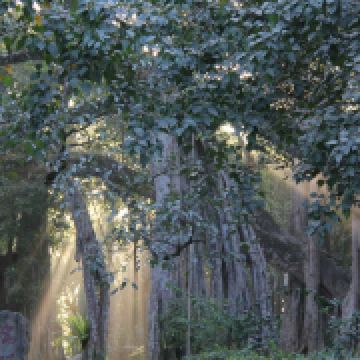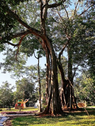 当夕阳为气根镀上金边,整片榕林会化作光影交错的迷宫。归巢的鸟群掠过树冠,惊起几片榕树叶,飘落在林间供奉树神的小祭台上——这里没有宏大的景观工程,但每一根垂落的气根都在书写雨林生命的原始诗行。