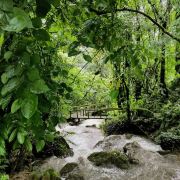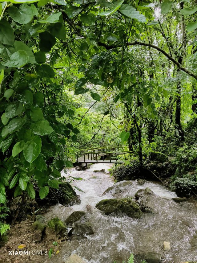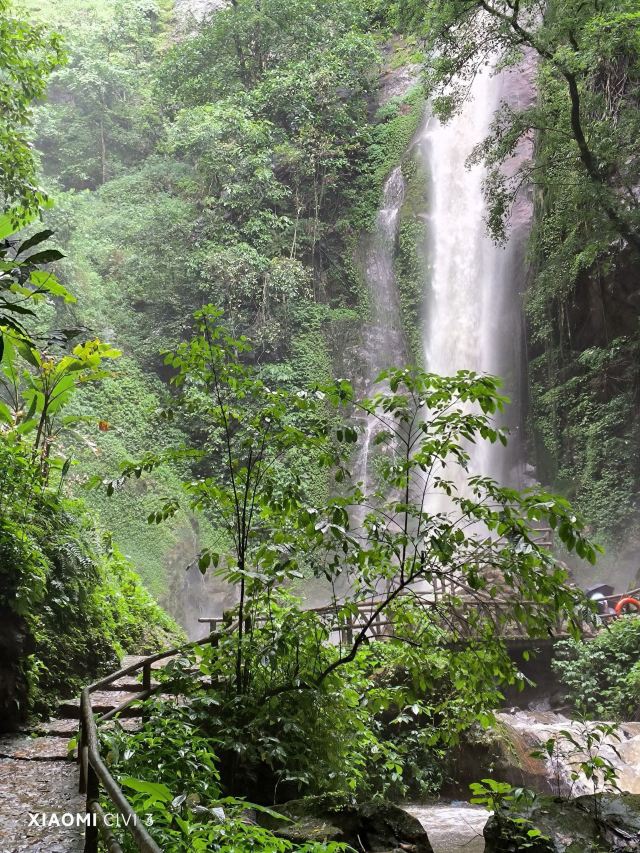 莫里瀑布是景区内负氧离子浓度较高的地方,瀑布上游还有数个小瀑布,形态各异,幽雅壮美。