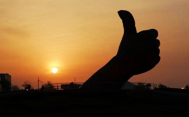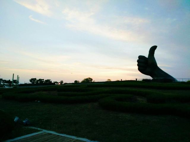 4分 满意大拇指公园,其实就是建在海边的一处小广场,广场中间有一座大拇指竖起的雕塑,因此而得名