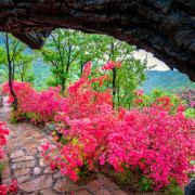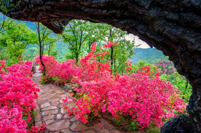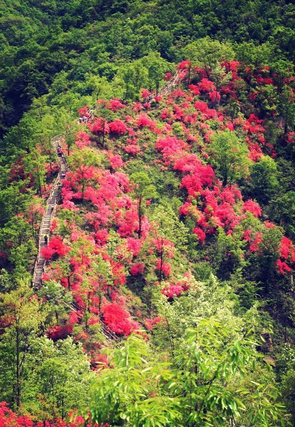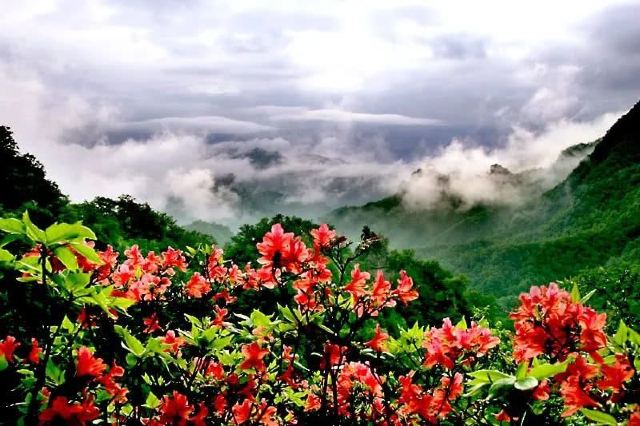 景区内分布有十万顷野生杜鹃,每年春天漫山遍野的杜鹃花竞相开放,尤其是绵延9公里长的杜鹃花长廊,更是花团锦簇,灿若云霞。
