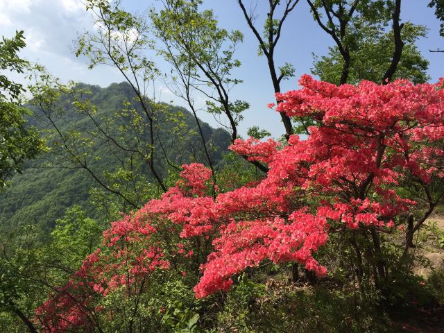 再说说西泰山景区,4月下旬至5月上旬,是省内看杜鹃的好去处,情侣峰、炎黄峰的杜鹃都盛开了,很漂亮。天气晴朗,见到了在城市里难得一见的蓝天白云,心情超好。山比较陡,两个山峰爬下来挺累的,虽然情侣峰是西泰山的主要景点,个人感觉炎黄峰更好看一些,上传几张照片,手机拍的,不专业。