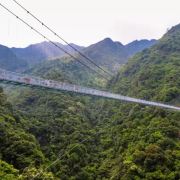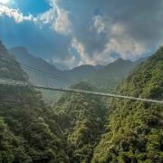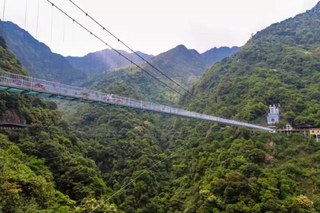 云门山玻璃桥全长316米,垂直高度达168米,桥体总宽为2.8米,是广东省内首座高空景观玻璃桥。玻璃桥两峰地势险峻,中间峡谷横穿,山间云雾缭绕,云深雾重之际,踏在玻璃桥上如若“脚踏祥云,腾云驾雾”。值风和日丽之时,踏在玻璃桥上,仿佛直接游走空中,行走在玻璃桥上犹如“人在空中走,景在脚下游”,惊险无比。