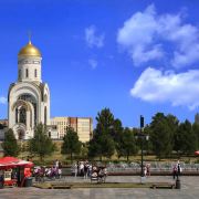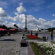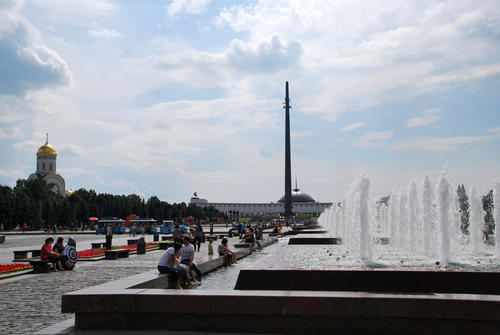 胜利广场绿树环抱,风景优美。建于1995年5月,是为了纪念世界反战争胜利50周年而修建的。主要由胜利纪念碑、圣格奥尔基大教堂、卫国战争博物馆和近百米长的喷泉组成,气势宏伟、十分壮观。