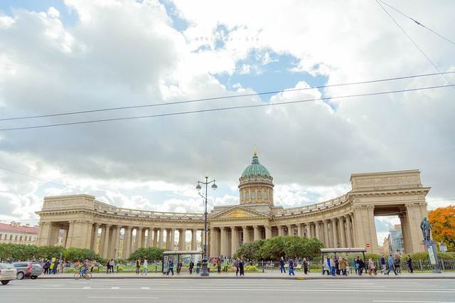 5分 超棒【圣彼得堡·喀山大教堂】喀山大教堂是由俄罗斯建筑师沃罗尼欣设计,于1801-1811建成的,专为存放俄罗斯东正教的重要圣物——喀山上帝之母圣像而建造,并因此而得名。它的外貌具有典型的当时帝国风格的特征。大教堂正门两侧有造型严谨的古典式柱廊向外延伸,宏伟壮观,形成一个半圆形广场教,柱廊的后面露出高达70米的教堂圆顶。大教堂正面的浮雕、北面柱廊上的雕刻、殿内装饰和油画均出自名家之手。喀山大教堂的内部不大像一般的教堂,而更像一座宫殿。它明亮、轻快,以柱列分隔的长形主堂高大宽敞,中央穹顶辉煌华丽,仰视可见一幅圣母图,周边饰以圣经人物雕刻和水彩壁画。