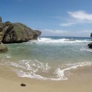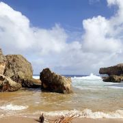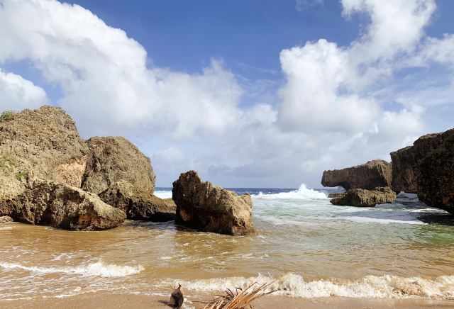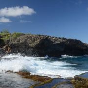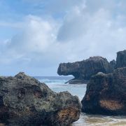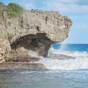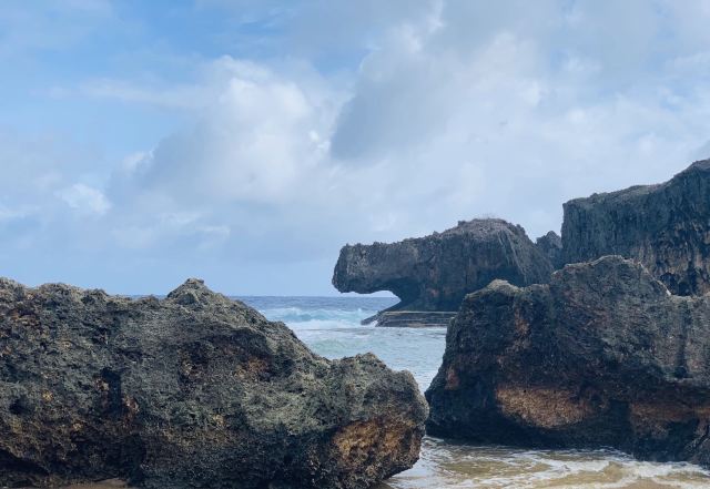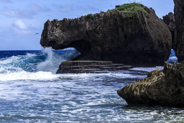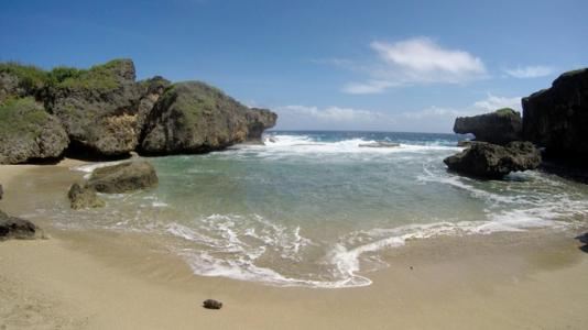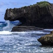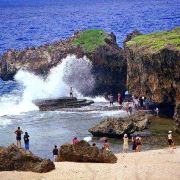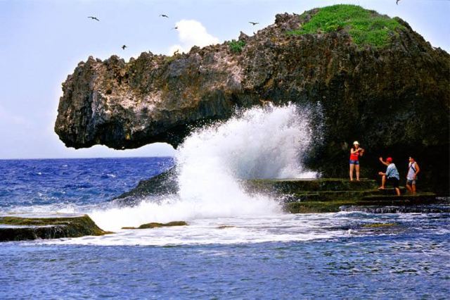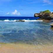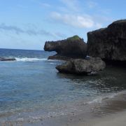 海滩位于塞班岛的北部,因形似鳄鱼而得名,远远望过去,就看到一头凶狠的鳄鱼俯卧在太平洋边,与汹涌的波浪搏斗。在此可以看到太平洋汹涌的海浪,也可以站在酷似蛋糕的礁石上,可拍到海浪铺天盖地浇下来的经典照片。