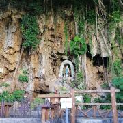 走到尽头便可看到山壁上的圣母像,双手合十,非常慈祥。圣母像的前方被围起来,非重大节日,游客不得入内,但可在外部的椅子上休息。在圣母像前方右侧,有一个小的蜡烛室,当地人祈祷完之后,可再次点上蜡烛。