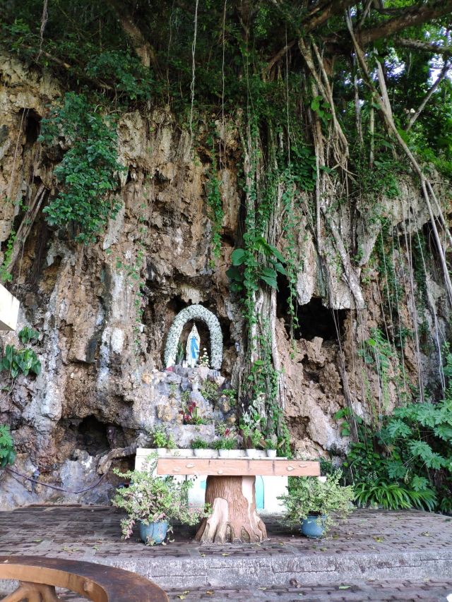 圣母洞,在塞班的半山腰上,是当地天主教圣地。这里有参天大榕树,山壁上有圣母像,当地人会经常来此进行洗礼、祷告。