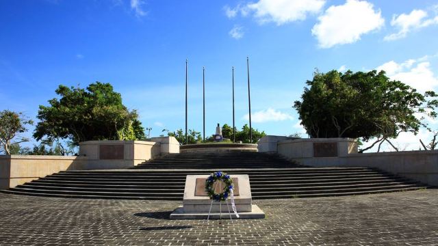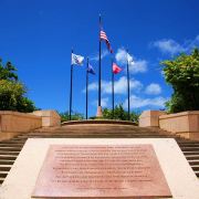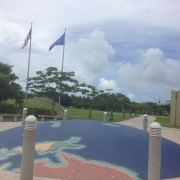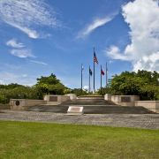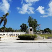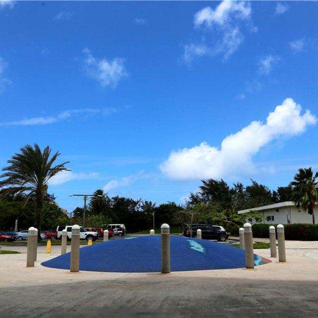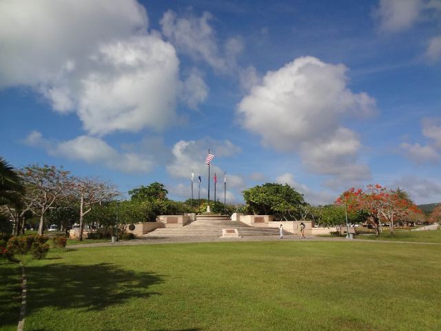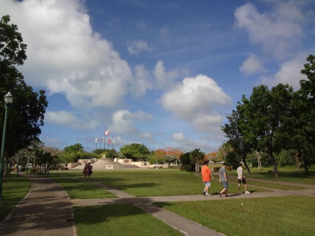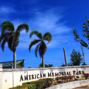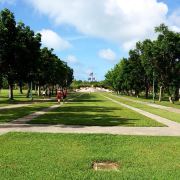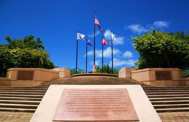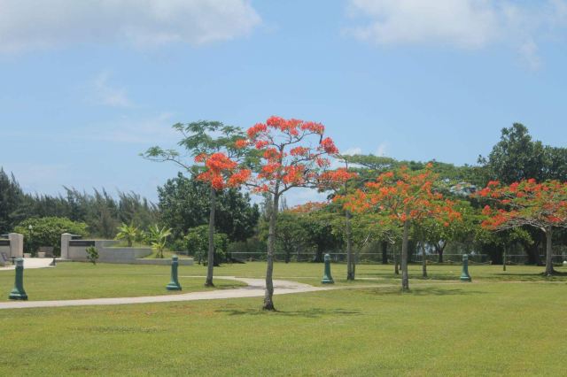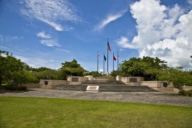 公园是敞开式的大门,站在大门口的中轴线上便可见远处悬挂着的美军海陆空三军的旗帜。步入公园,园内绿草如茵,春天前往的话还可以看到枝头上盛开着的,火艳艳的凤凰花,在星条旗下异常鲜艳迷人。