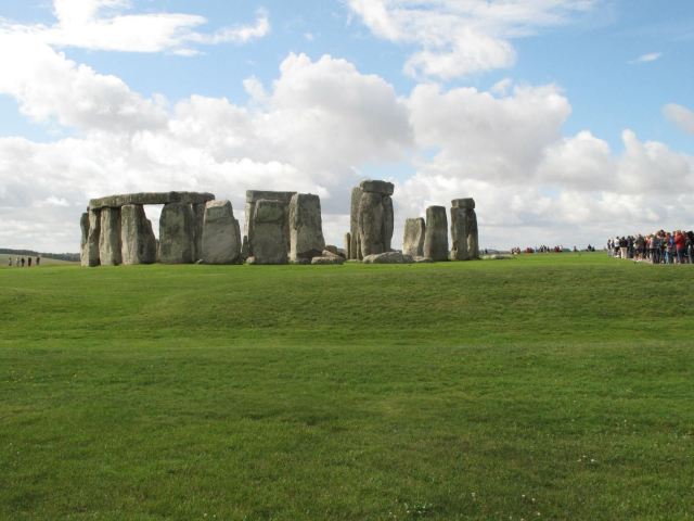 在英国巴斯东南方向的索尔斯伯里(Salisbury)平原上,大量的环状列石屹立于无垠旷野之中,这就是英伦三岛、神秘的史前遗迹——巨石阵。公元1130年,英国的一位神父在一次外出时,偶然发现了巨石阵,这些气势巍峨的巨石平均重量近30吨,它的排列方式以及具体用途据至今仍然莫衷一是。去往史前巨石阵途中,沿途竖有标识,巨石阵的四周围有栏杆,参观者可以在离它三十米外的地方观看。据考证,巨石阵至少建立于公元前3000年,初建时是一圈竖着的巨石群,其上又叠加有一圈横卧的巨石,它们整齐地排列成一个完整的同心圆,圆的中央是一些巨石对称着围成的马蹄形。