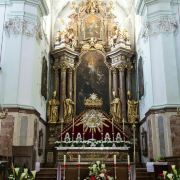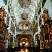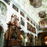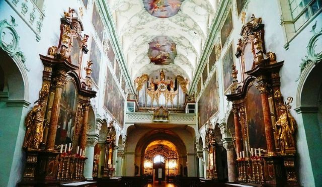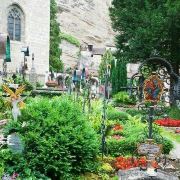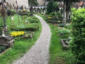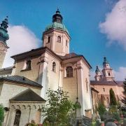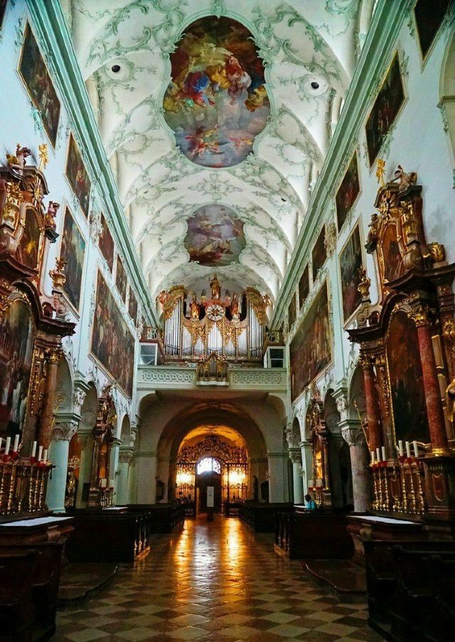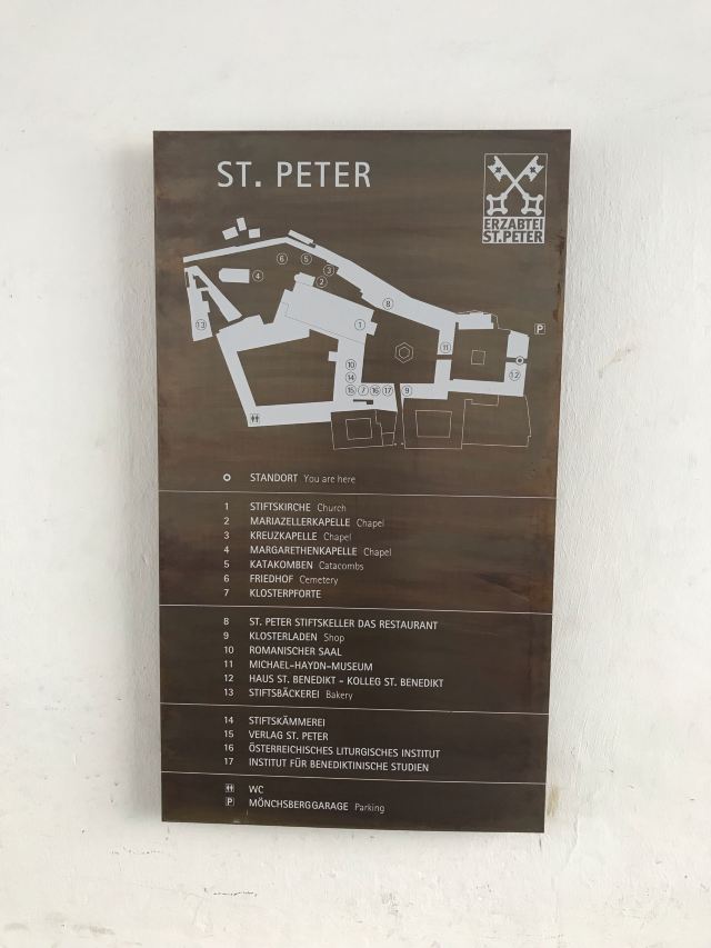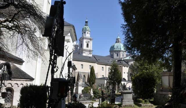 依山坡而建的圣彼得修道院是一栋有三重侧廊的罗马式长方形会堂,这里为了强化基督教于696年兴建的教堂。直到今天,依然是修道士们修行的修道院。这座古老的修道院是萨尔茨堡唯一的罗马式教堂,在建筑中心的天花板上,有许多描绘宗教的画像,非常有趣。