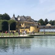 5分 超棒很好玩的地方,几年前去的,因为之前在一部有点老的欧洲旅游节目里看到过,所以列入行程计划。我们是提前网上买了票,因为需要在门口由专职导游领入,会全程解说,当时只有英文的。我们自驾去的,要跟着导航,否则很难找到,停在动物园旁边的停车场,然后从旁边小路进去,沿着小路都能看到动物园的动物。海尔布伦宫绿化都修剪得很好,在等候入场时也能在门口休息一下,河水很浅也很清凉。里面充满了童趣,导游也很幽默,偶尔也会“整人”,以后会带孩子再去一趟的。
