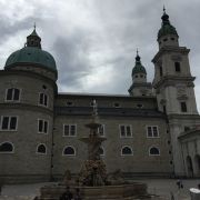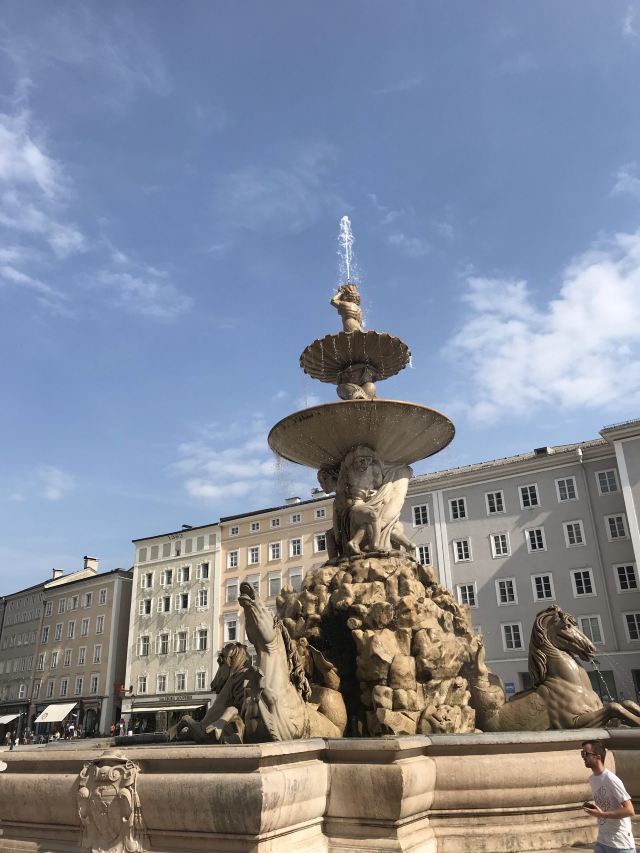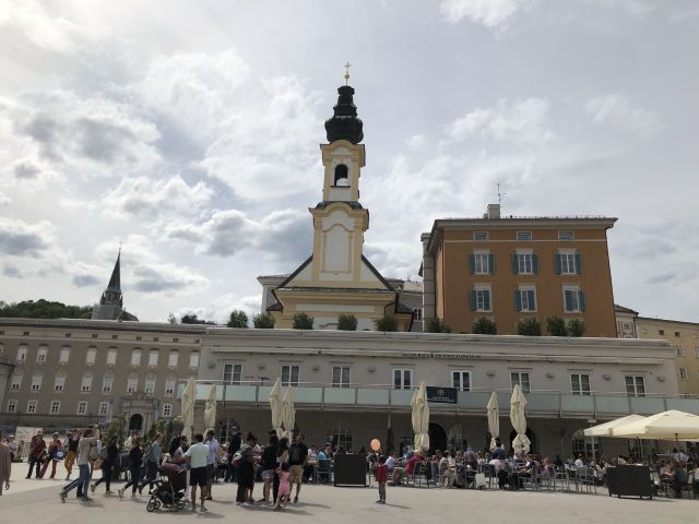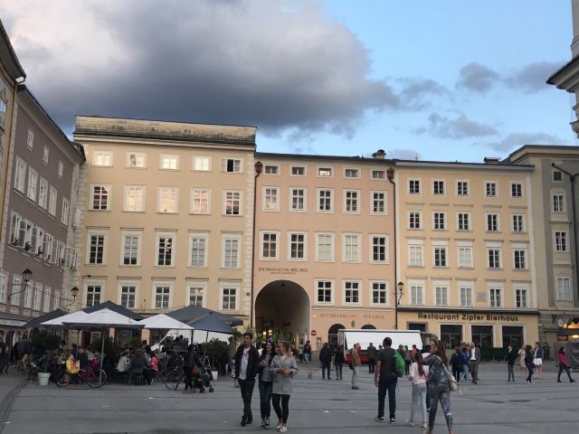 小城虽小,但依靠阿尔卑斯山脉,又是名人莫扎特的故乡,紧挨德国慕尼黑,交通便利,游人还挺多的。