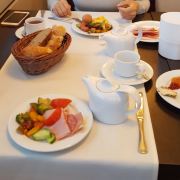 5分 超棒这次我们在奥地利萨尔斯堡的酒店非常好,值得推荐给大家。酒店名称是叫萨尔斯堡奥地利流行酒店,在携程上也有这家店。这家酒店的位置特别方便就在,萨尔斯堡中央火车站,一出站的,左边就看见了,所以拖着箱子就可以入住,很方便。这个酒店的门口就是公交车站总站,可以坐公交车去好多热门景点。另外在车站这儿也有一个超市,所以想买点东西也很方便。最好的是酒店的早餐非常好!早餐厅是在酒店的顶层,可以望见萨尔斯堡全城以及远处的阿尔卑斯雪山,早餐厅很优雅。并且,早餐的品质也很不错,热食、肉类、面包、果汁、牛奶、奶酪,都很齐全,我们每天都在这里吃一个饱饱的早午餐,精神抖擞的去旅行。