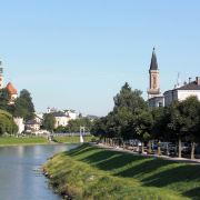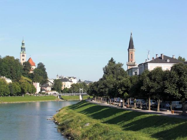 萨尔茨堡老城区是世界上唯一一个包含了中古世纪和巴洛克风格两种建筑群的城区。左侧老城区起于萨尔茨河岸,包括Nonntal中心地区、要塞山和霍恩萨尔茨堡要塞、整个僧侣山(位于霍恩萨尔茨堡要塞的右侧)。萨尔茨堡大部分的景点都集中在这个区域内,于1996年被列为联合国世界遗产。