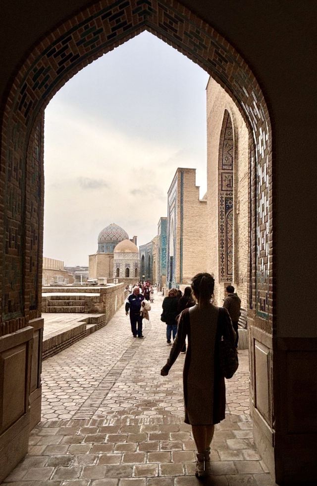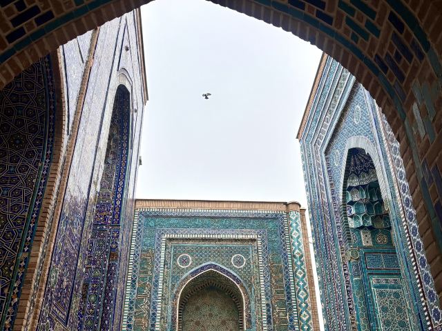 夏伊·辛达陵墓群位于乌兹别克斯坦东北部,是中亚闻名的陵墓之一,由三组结构组成,通过四个拱形的通道连接。其名字夏伊辛达是“永生的国王”的意思,和Kusam