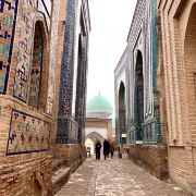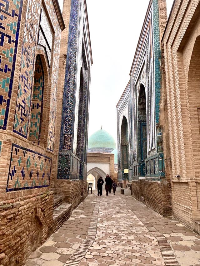 沿着一条 500 米左右长的大道修建了二十几座装饰着精美瓷砖的陵墓。这里围绕着 7 世纪的库萨姆·伊本·阿巴斯陵墓修建,穆罕默德的表亲,被人们称为“永生之王”夏伊·辛达。