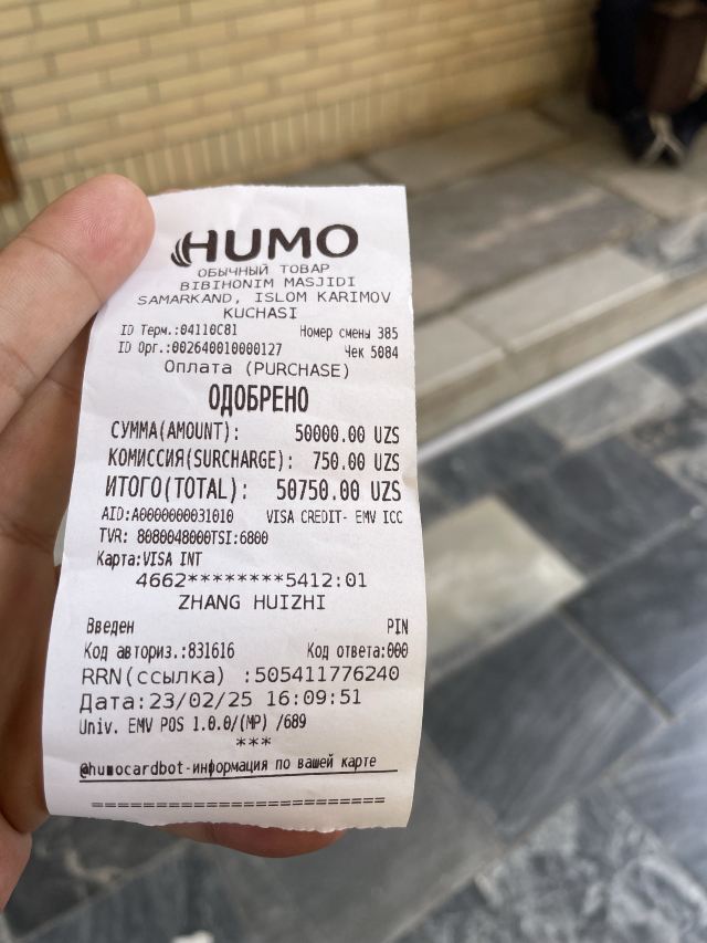 - [4天前] yz**** 发表了撒马尔罕州资讯 自由行在撒马尔罕的最后一天,由于早上8点的火车,酒店的早餐是赶不上了,提前给前台说好早上开入住证明(