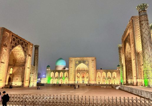 - [4天前] 背包客M** 发表了撒马尔罕州资讯 雷吉斯坦广场边走边看,经学院彩色瓷砖真夺目,傍晚光影很有故事感,藏着老传说和夜里的风声~
